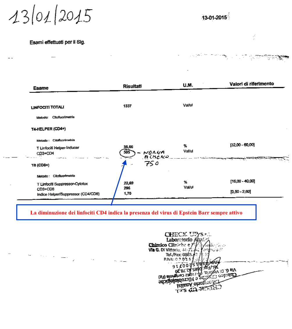 Nell’esempio, viene dimostrata la presenza reale del virus di Epstein Barr, nel sangue intero, plasma, cellule. Nonostante anticorpi IgM negativi, non è possibile eseguire questa interpretazione, conduce ad un grave errore diagnostico, immunologico, terapeutico; dimostrata una non conoscenza dei testi di medicina e letteratura internazionale. Lasciare un virus nell’organismo, conduce a gravi patologie.