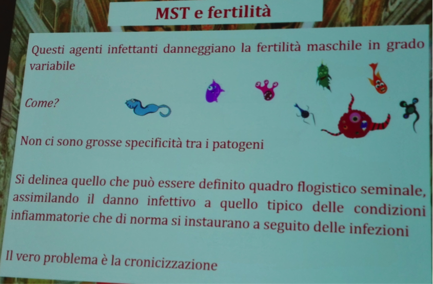 La Chlamydia è un batterio intracellulare, vive dentro le cellule come i virus, spesso associata al Papilloma virus. Non necessariamente viene contratta con i rapporti sessuali, può essere assunta attraverso le vie respiratorie, una tosse con catarro insistente, può costituire il sintomo della sua presenza; dalle vie respiratorie ha la possibilità di “scendere” verso le vie urinarie, l’apparato riproduttivo. È un batterio latente e persistente, non determina immediatamente sintomi specifici, con il tempo i processi infiammatori rendono l’ovaio con scarsa riserva ovarica, chiude le salpingi, impedisce la progressione dell’uovo nell’utero, si posiziona, con il Papilloma virus nell’ingresso del collo dell’utero impedendo la progressione degli spermatozoi; la Chlamydia si aggrega sui flagelli degli spermatozoi ostacolandone il movimento, come Mycoplasma, Ureaplasma.