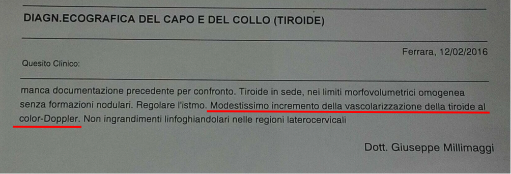 Questo dimostra una iperfunzione della Ghiandola Tiroide, appurare la causa che ha determinato questa iperfunzione, costituisce la ricerca fondamentale per condurre il ragionamento clinico, giungere alla diagnosi e alla terapia conseguente.