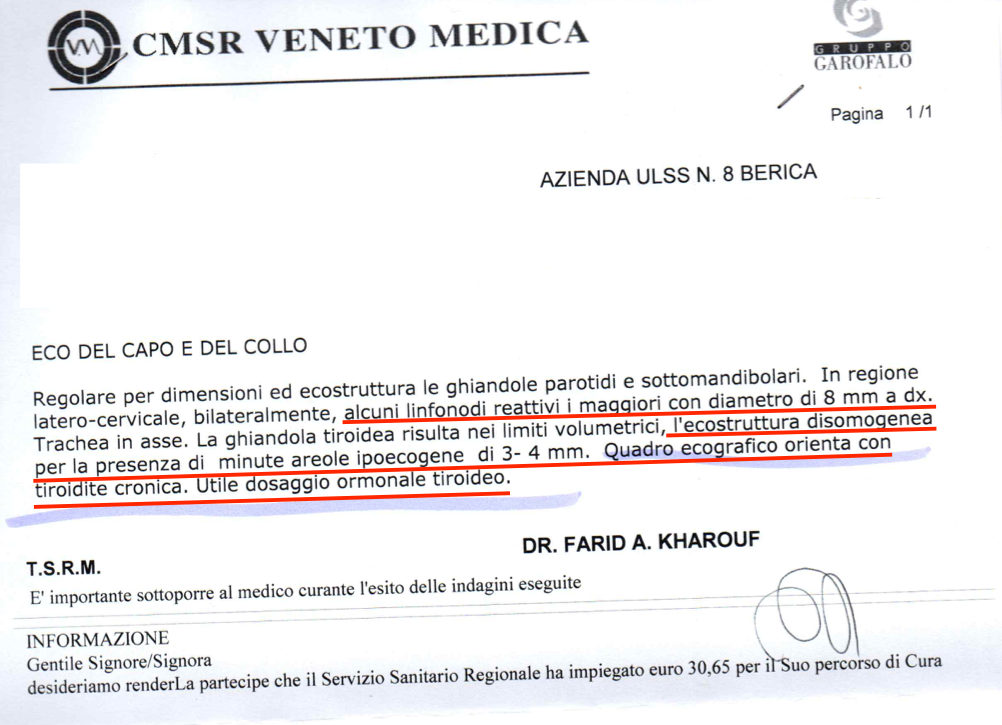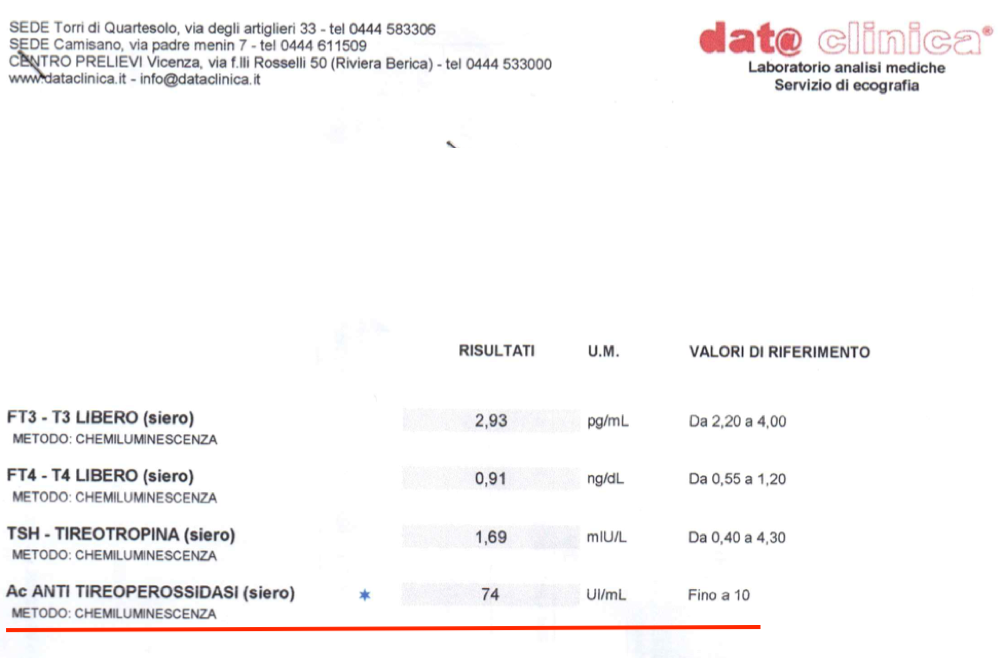 All’inizio del 2017 ho iniziato a percepire una stanchezza per me molto insolita, con sensazione di malessere che piano piano mi ha preso l’intero corpo, ma in particolare la gola e le orecchie con un ronzio che non mi lascia mai, nè giorno nè notte. La mia dottoressa di base mi ha fatto fare praticamente tutto, perfino la risonanza magnetica al cervello. Nulla di nulla, esami del sangue praticamente senza nessun asterisco e tiroide che presenta gli anticorpi abbassati rispetto ai precedenti esami (ho la tiroidite di Hashimoto)