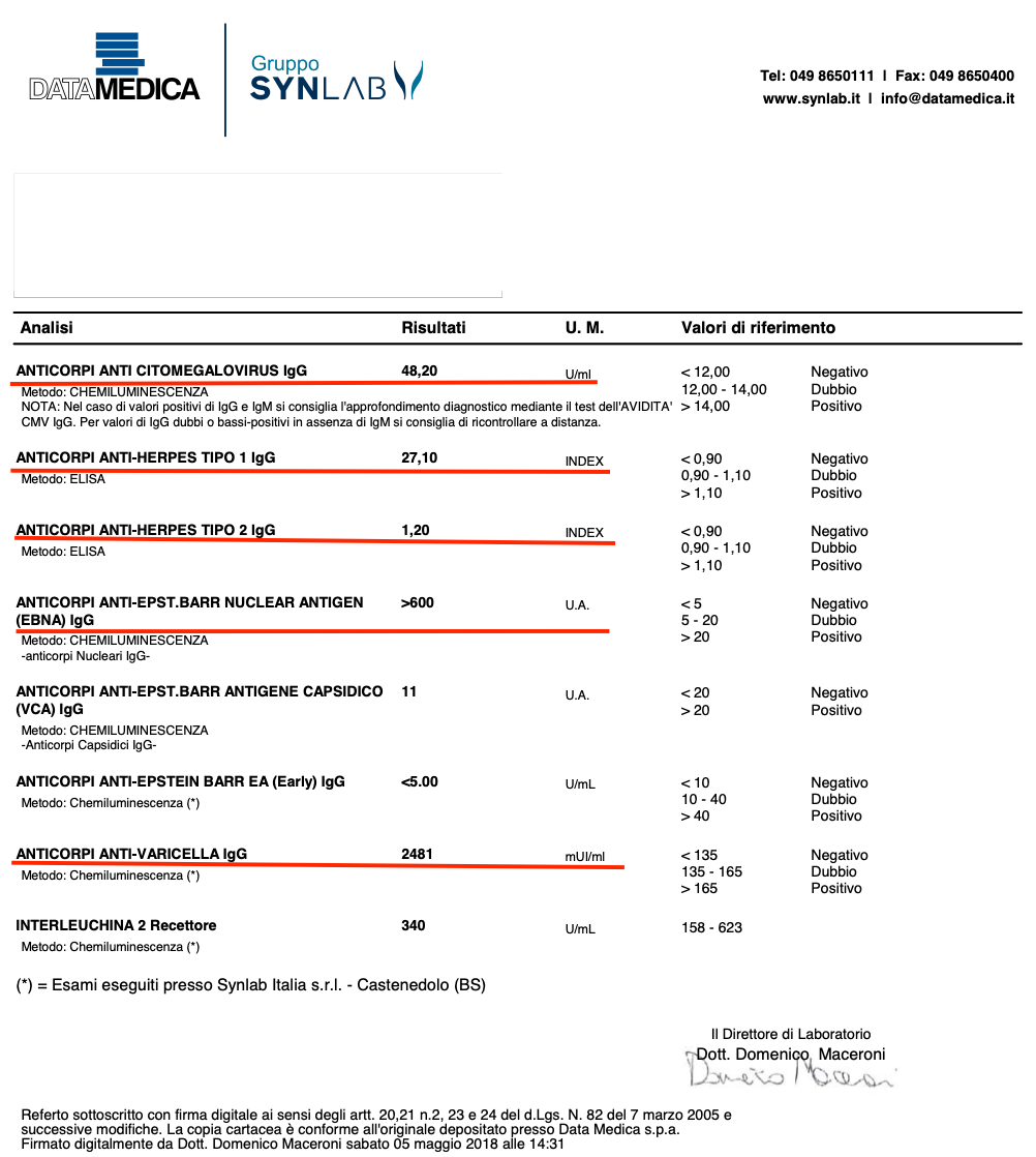 Ma io continuavo a stare male, a dimenticarmi le cose da fare (sono presidente di una associazione xxxxxxxxxx e questo per me è drammatico) a sentirmi sempre più stanca e quindi la mia dottoressa mi fa fare il pannello immunitario e si scopre che ho il virus EBV, non miglioro. Adesso ho pure la pressione alta e la stanchezza ed il ronzio alle orecchie che non demordono di sfiancarmi continuamente.