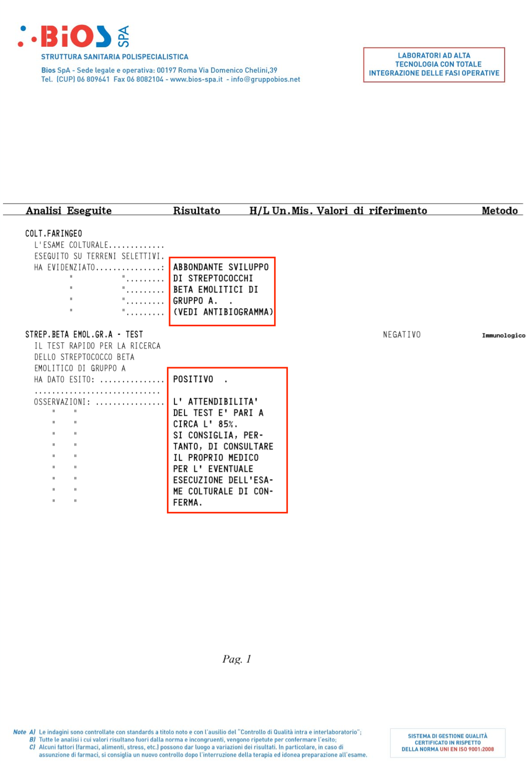 10) presenza di Streptococco betaemolitico di gruppo A 31-03-2017